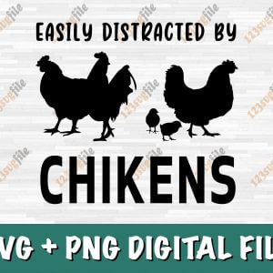 Easily Distracted By Chickens Funny Chicken Lovers Farmer SVG PNG EPS DXF Cricut Cameo File Silhouette Art