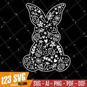 Easter SVG, Floral Bunny SVG, Spring SVG, Happy Easter Svg, Flowers Svg, Easter Shirt Svg, Files For Cricut, Sublimation Designs Downloads