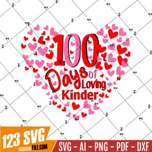 100 Days of Loving Kindergarten/School/100 Days of School/ Valentine’s Day SVG, PNG, sublimation, digital download – fully cuttable